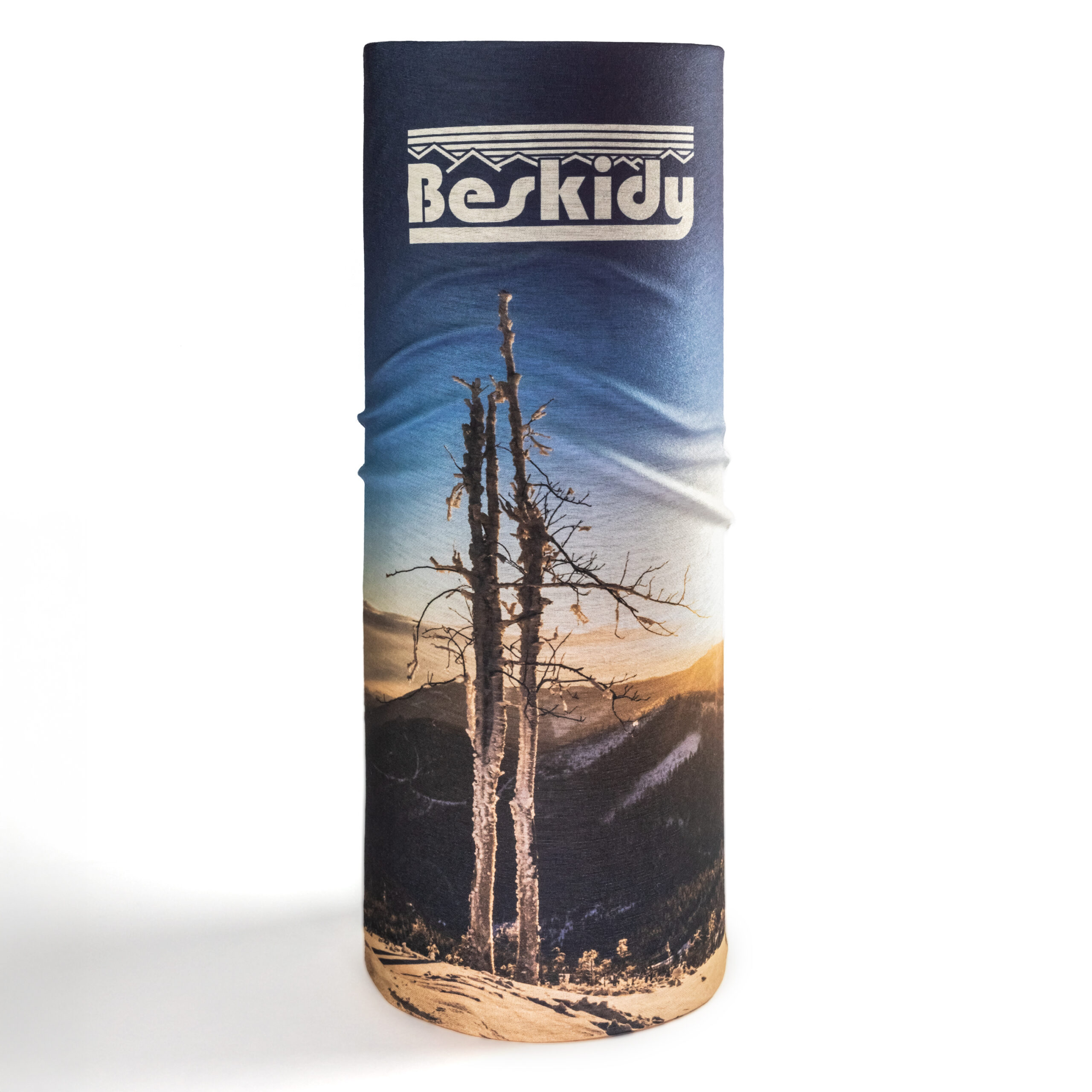 Poliestrowy cienki komin w wersji fullprint z logo Beskidy, zdjęcie wykonała Paulina Maj